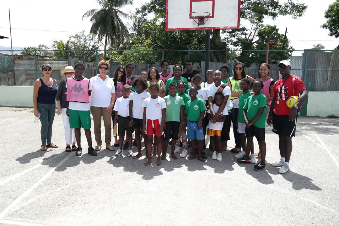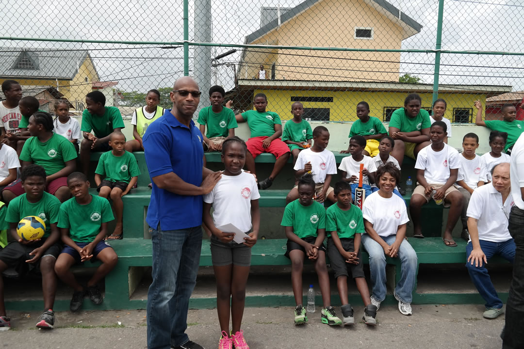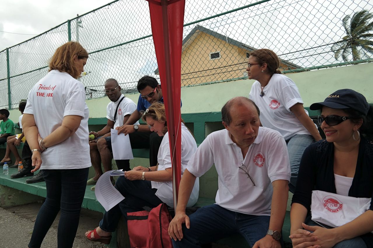 Daren Ganga soon organized a football team headed by the Commissioner, with Directors and Friends of the Ark and Wayne Jordan, to play against the kids. The Commissioner took a knock and the kids bowled tirelessly to get the Commissioner out, with no luck. The President of the Children’s Ark then took her turn and after four balls was caught out by one on the children. “ Lots of “ hi five’s” were expressed…