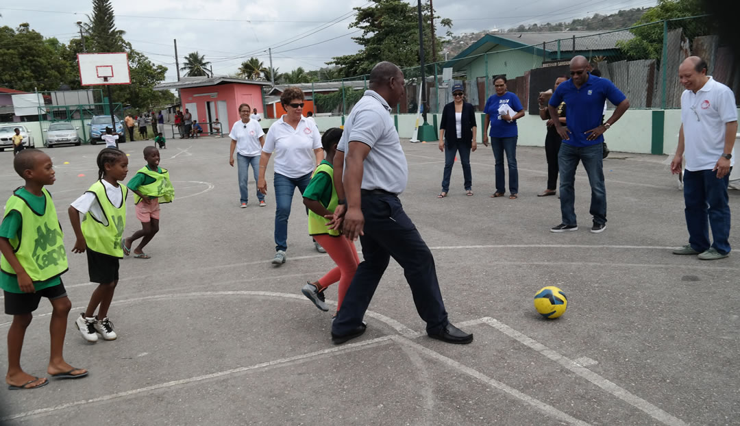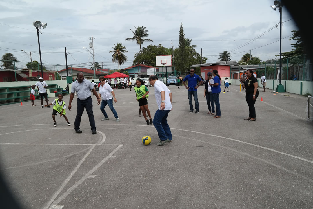 Daren Ganga then put together a football team headed by Police Commissioner Stephen Williams, Directors and Friends of The Children’s Ark and Daren Ganga himself,,, against the children. The Commissioner proved his agility and was kept busy with the children, who had already begun to show their skills. It ended with a penalty ‘shoot out’ and with a draw, as the children continued to show their newly learnt skills.